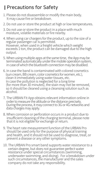 10. The URBAN Pro smart band supports water resistance to a