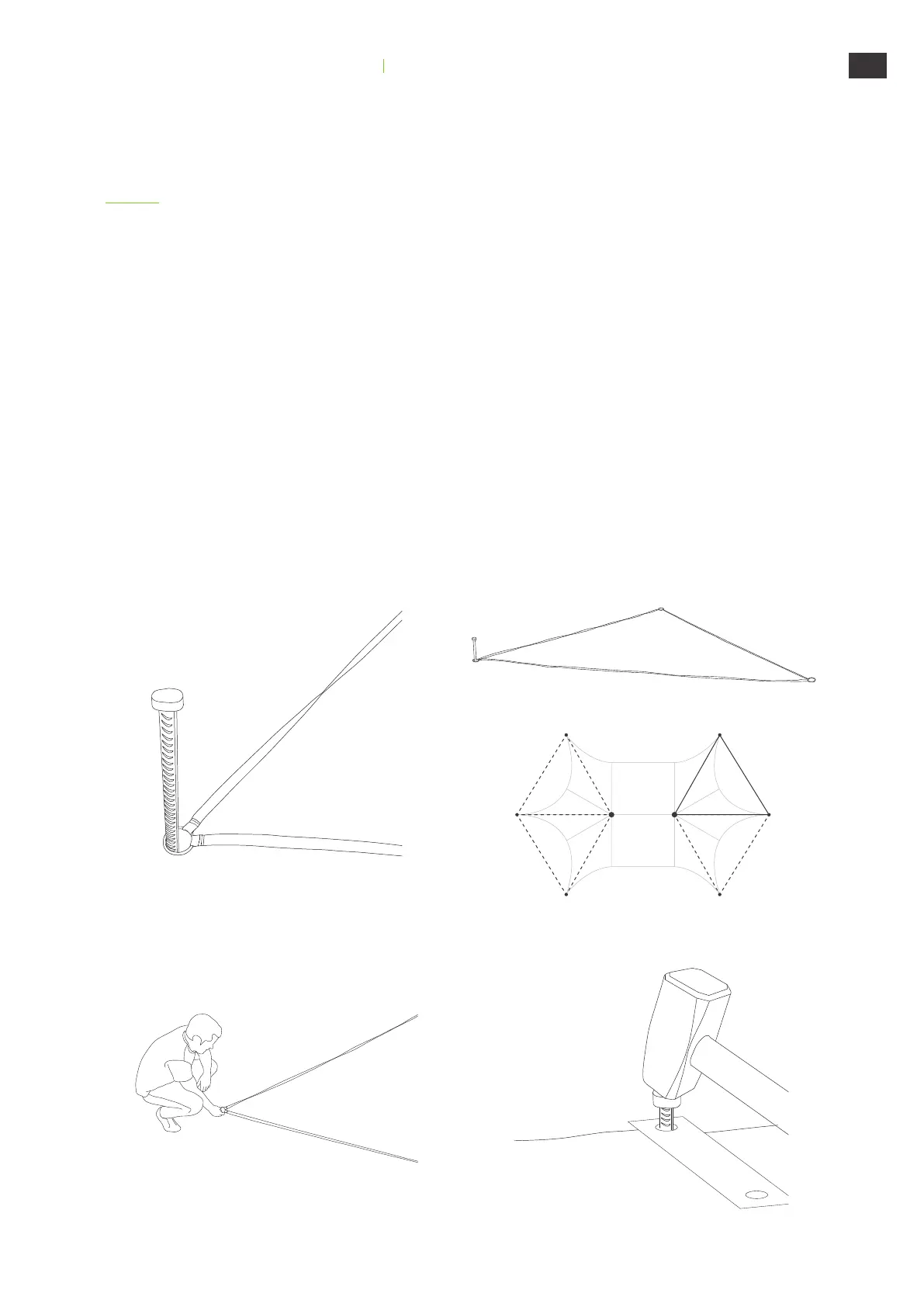 2. Form a triangle with the measuring rope and determine where the first 2 ground anchors