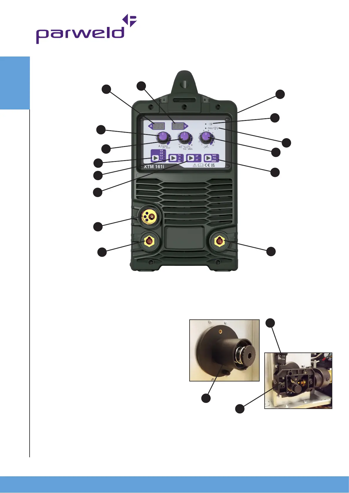 11. Process Selector MIG, TIG, or MMA.
