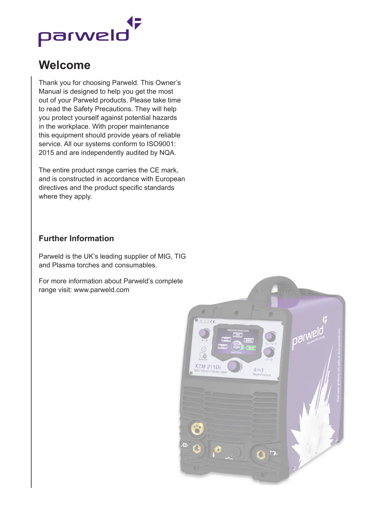 Thank you for choosing Parweld. This Owner’s