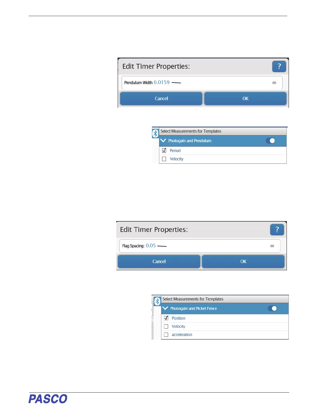 1. Click or touch “Photogate and Pendulum” and then click or touch “OK” to accept the choice and close the dia-