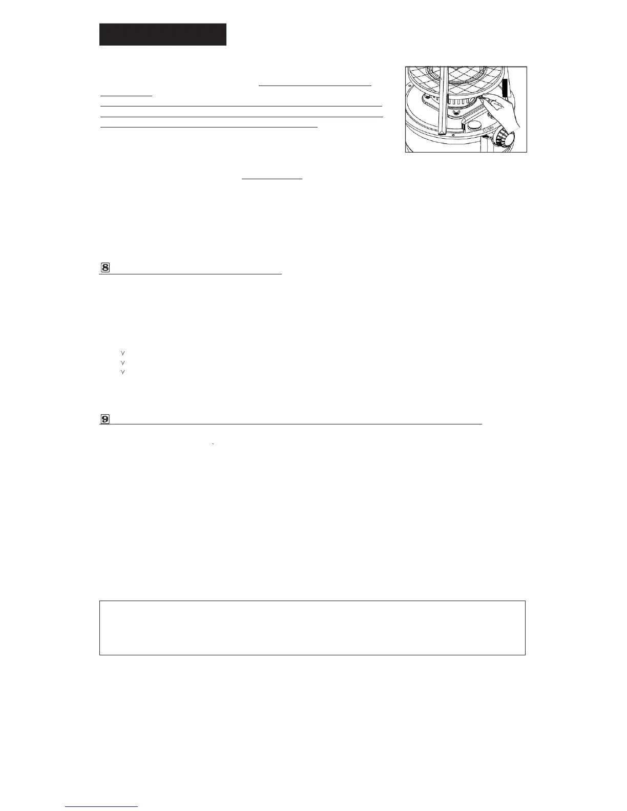 1 With your fuel tank nearly empty, burn your heater (without refilling) until the flame starts to burn out then