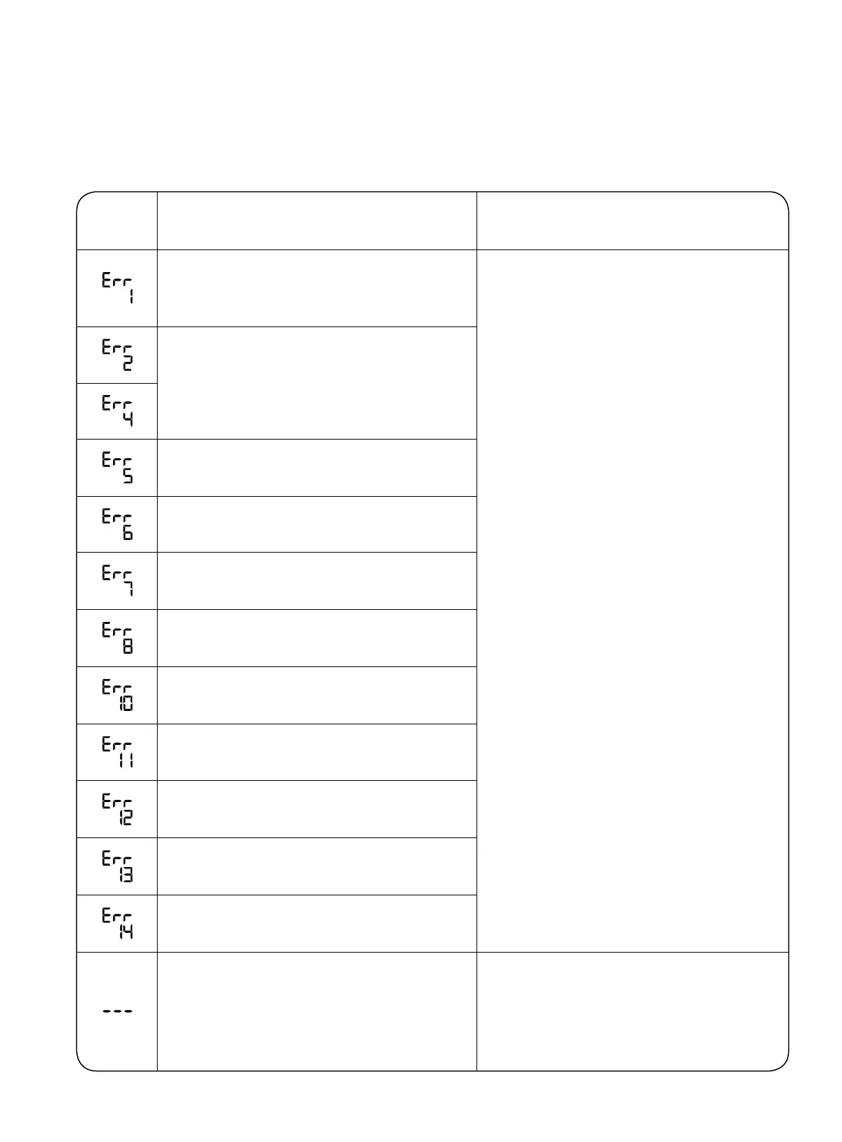 When there is error in the device, the LCD screen will display a corresponding error code. In case of