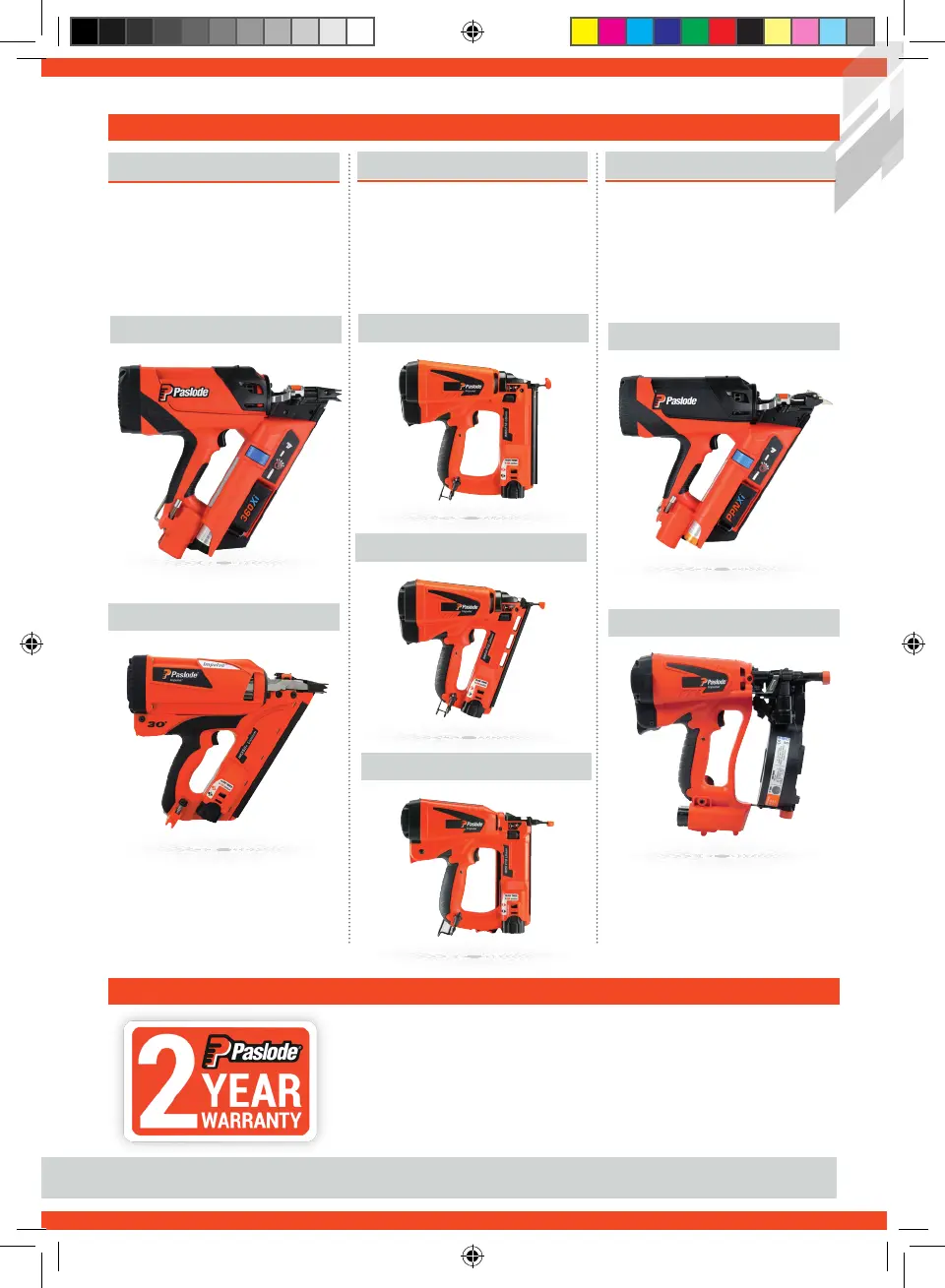 Paslode tools have a standard 2 year warranty, covering all components