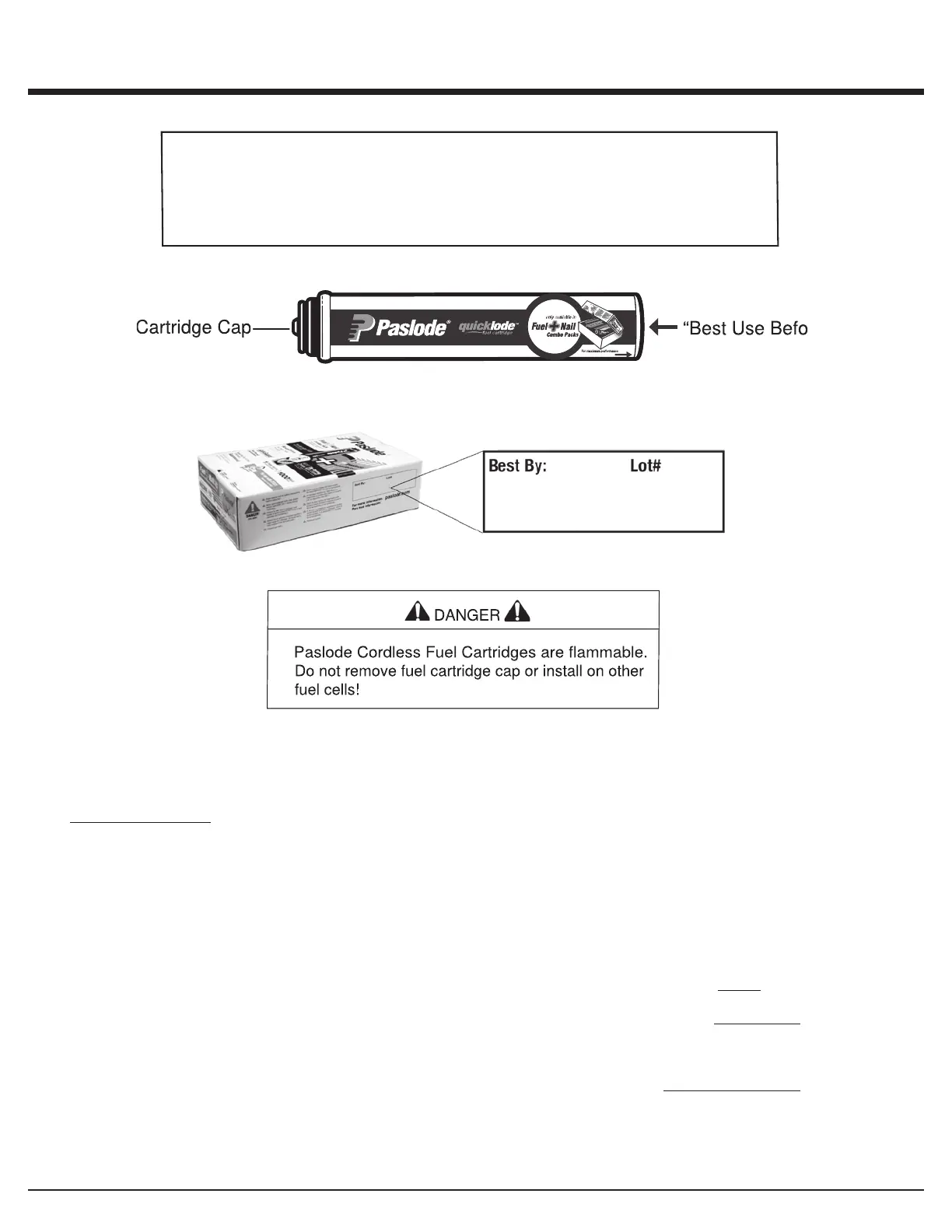 Paslode Cordless fuel cartridges are marked with a best use before