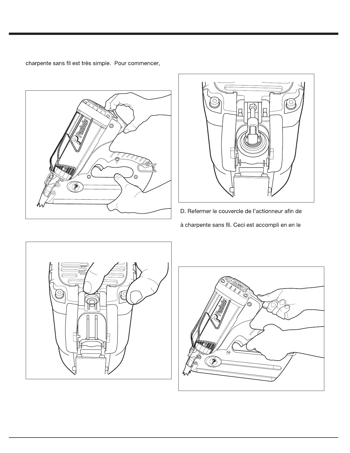 A. L’insertion de la cartouche à carburant dans l’outil à