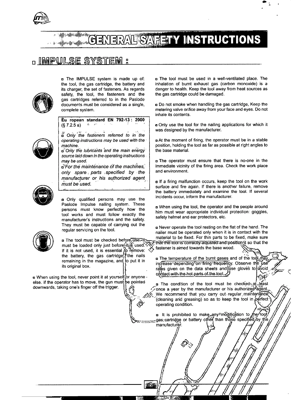 Paslode IM 350/90 CT - Impulse System Safety Precautions