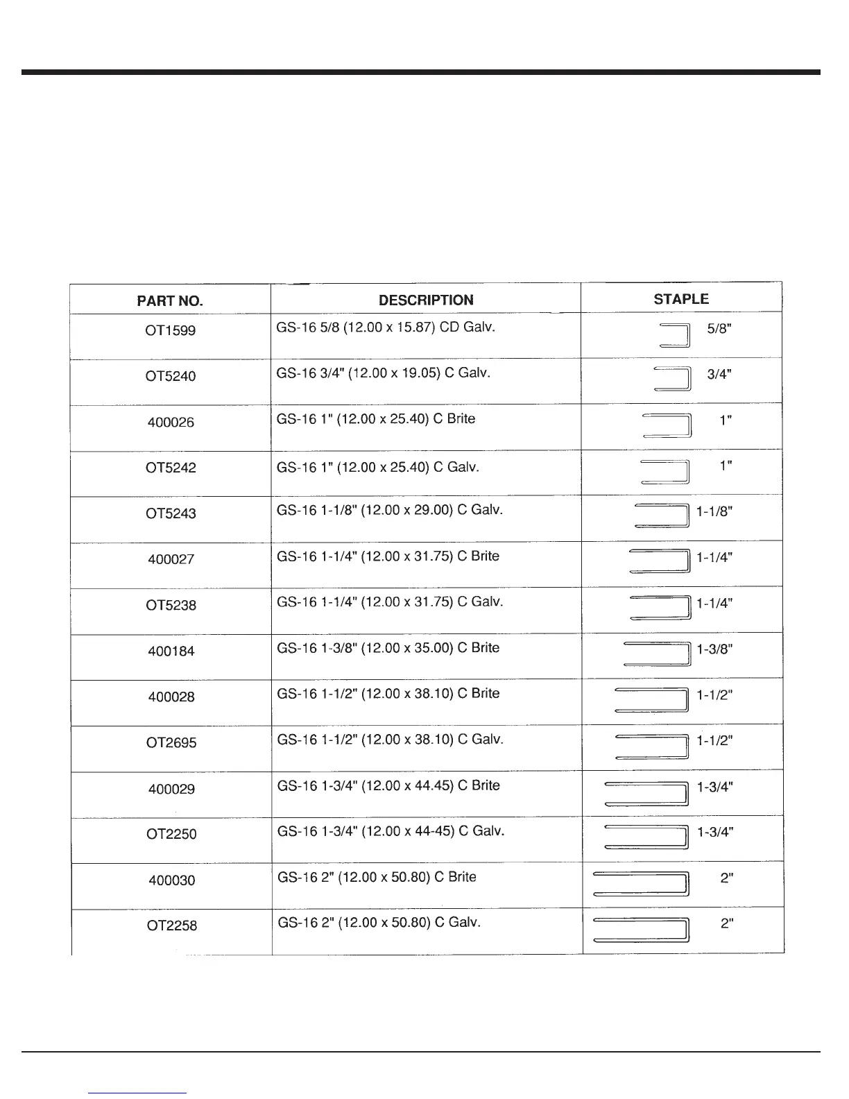 Paslode IM200/50 S16 - Fastener Specifications and Applications; Paslode S16 Staple Details; Recommended Applications for Stapler