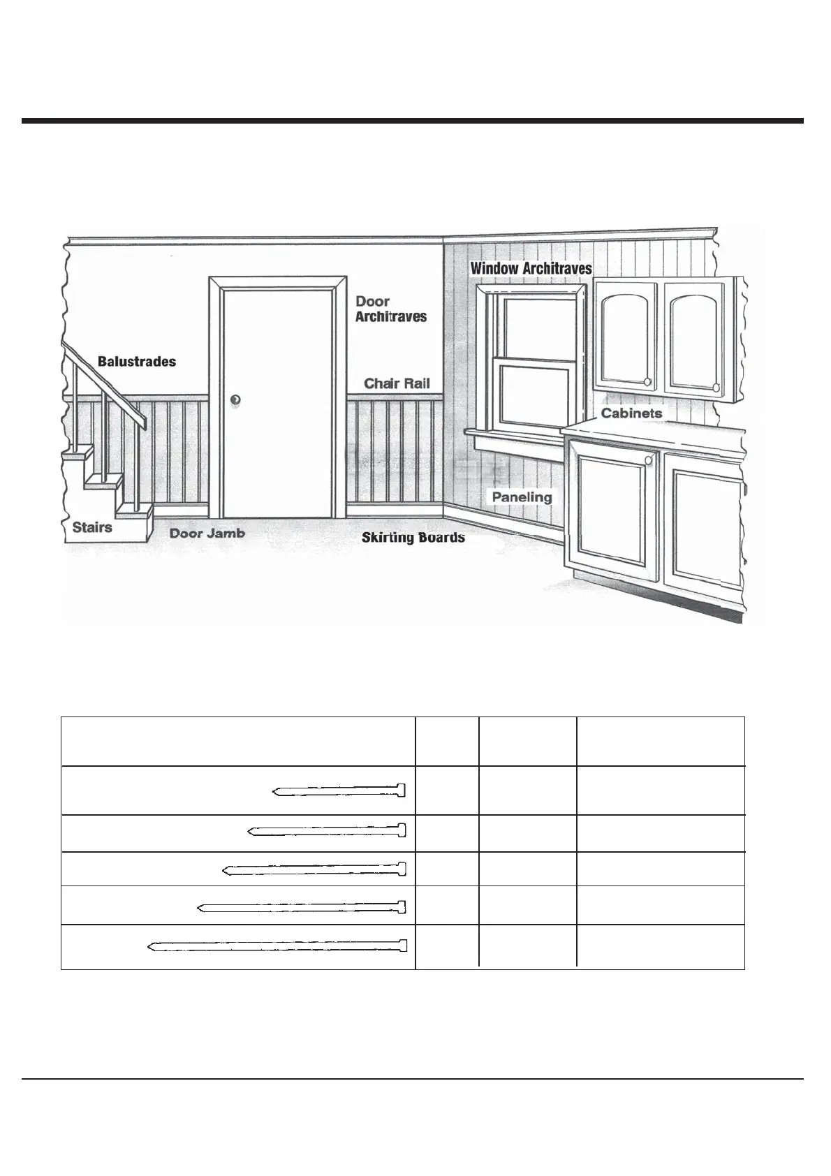 securing paneling; securing chair rails, picture moulding and other decorative trim.