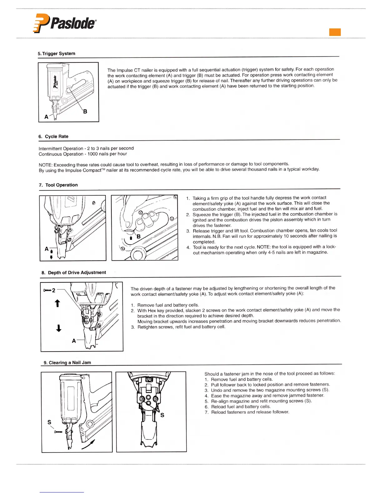 Paslode IM350 - Trigger System; Sequential Actuation Safety; Cycle Rate; Operational Speed Limits