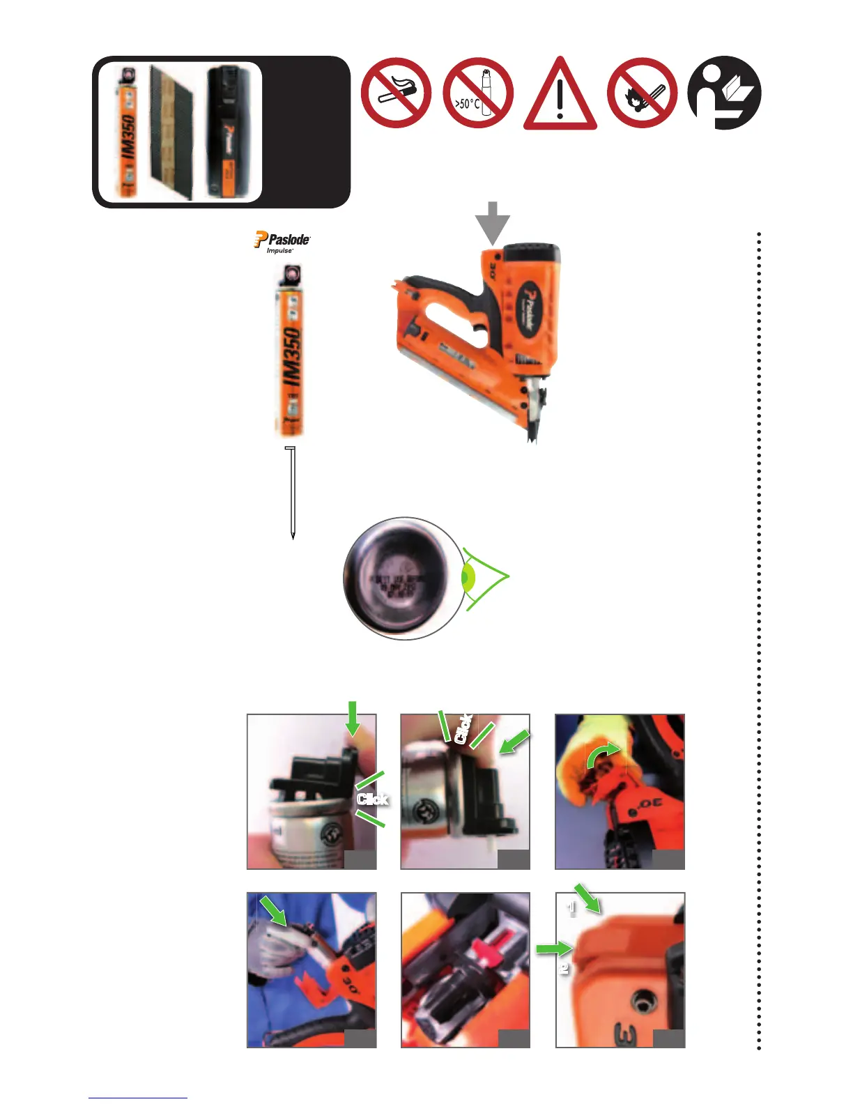 Paslode IM350+ - Product Specifications and Initial Setup; IM350+ Nailer Specifications; Loading and Powering On the Nailer