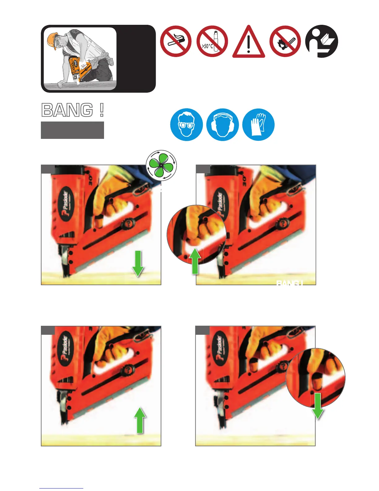 Paslode IM350+ - Nailing Procedures and Environmental Limits; Correct Nail Firing Procedure; Operating Temperature Guidelines