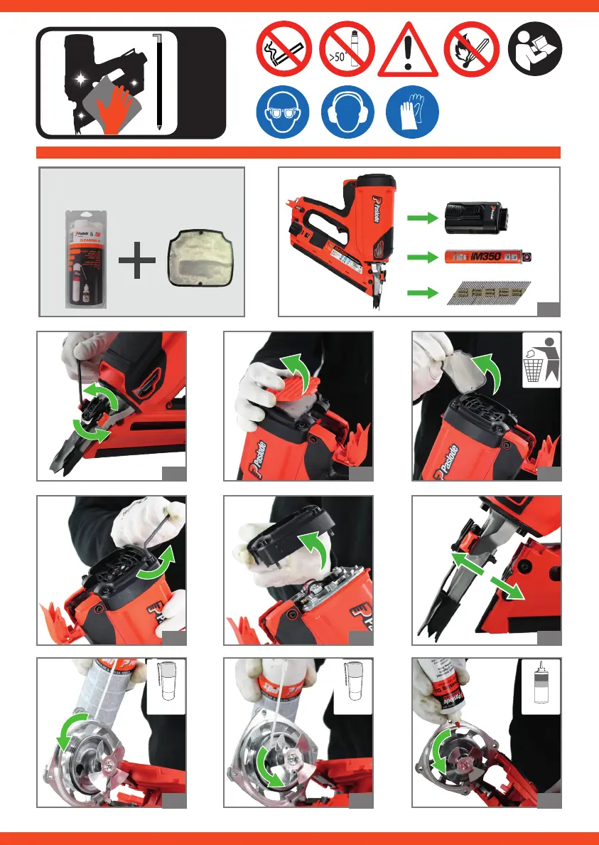 Paslode IM350+ - Detailed Nailer Cleaning Procedure; Nailer Cleaning Requirements and Tools; Step-by-Step Cleaning Instructions