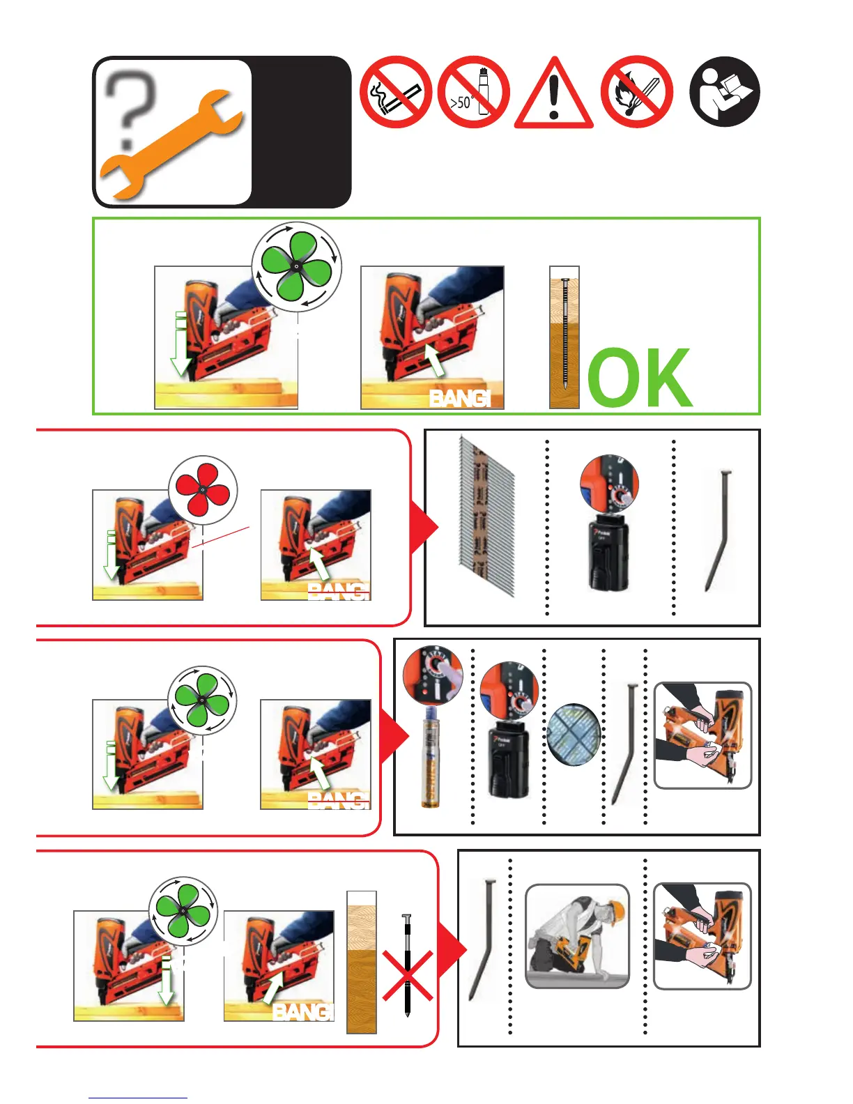 Paslode IM360CI - Operational Outcomes and Troubleshooting; Successful Nailing Process; Unsuccessful Nailing Scenarios