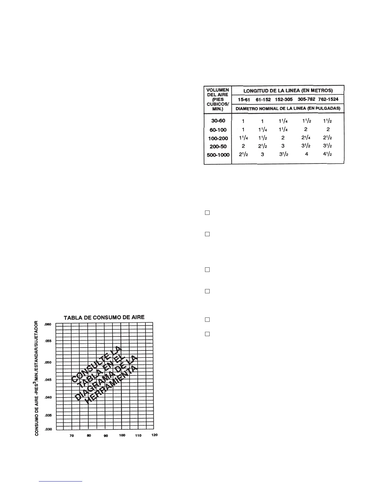 presiones superiores a 120 psi. La tabla de consumo