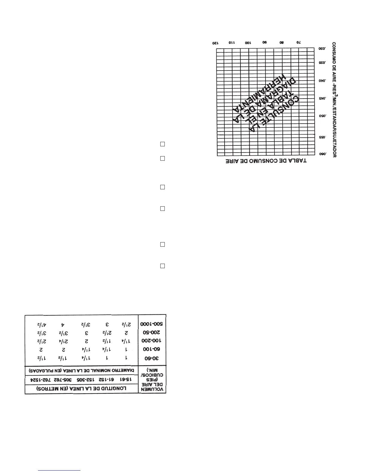 presiones superiores a 120 psi. La tabla de consumo