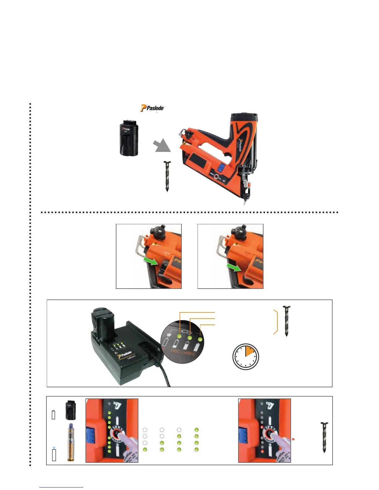 Paslode PPN35CI - Power and Charging System; Battery Status and Charging Indicators; Tool Power States