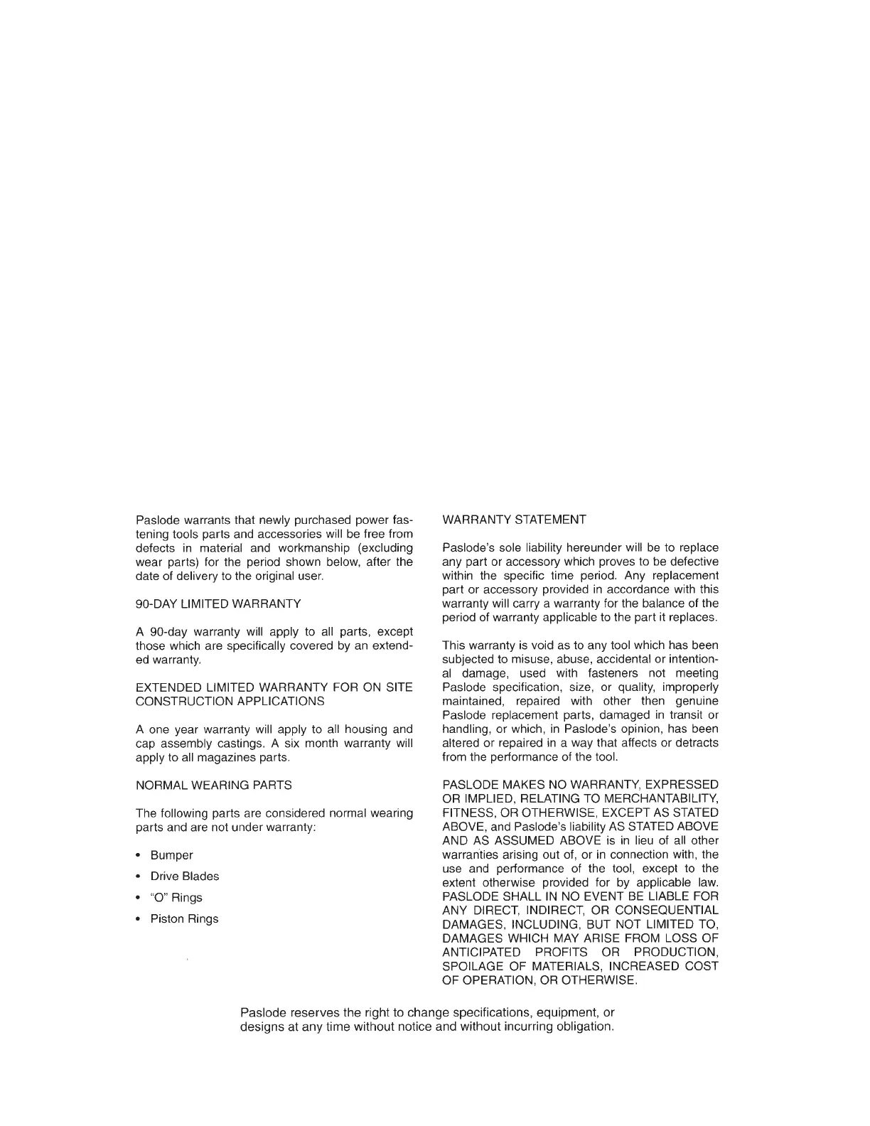 TOOL WARRANTY AND LIMITATIONS