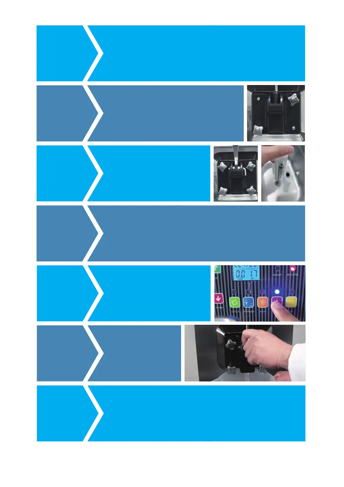 cream,dispense water by pressing handle, stop dispense