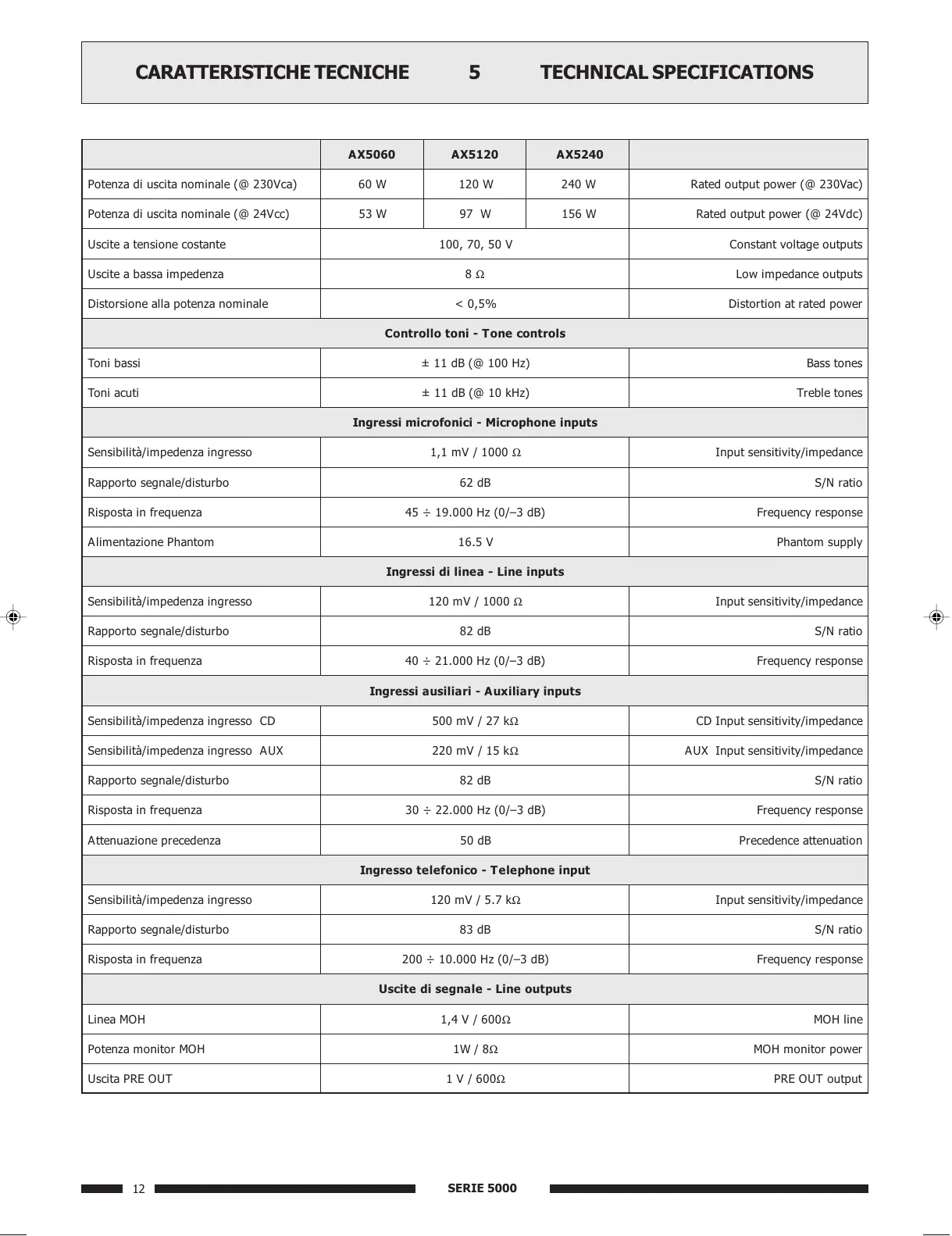 TECHNICAL SPECIFICATIONS5CARATTERISTICHE TECNICHE