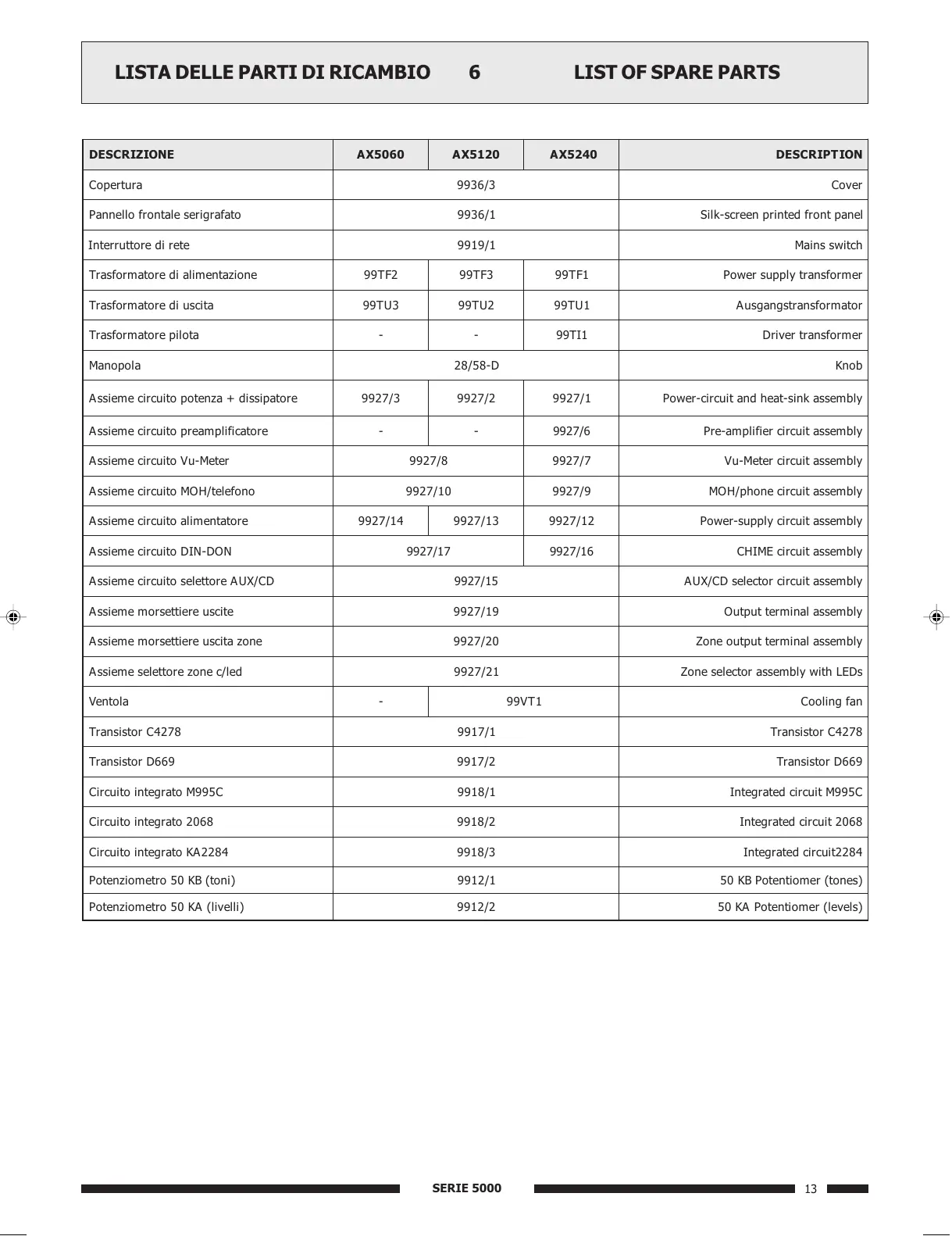 LIST OF SPARE PARTS6LISTA DELLE PARTI DI RICAMBIO