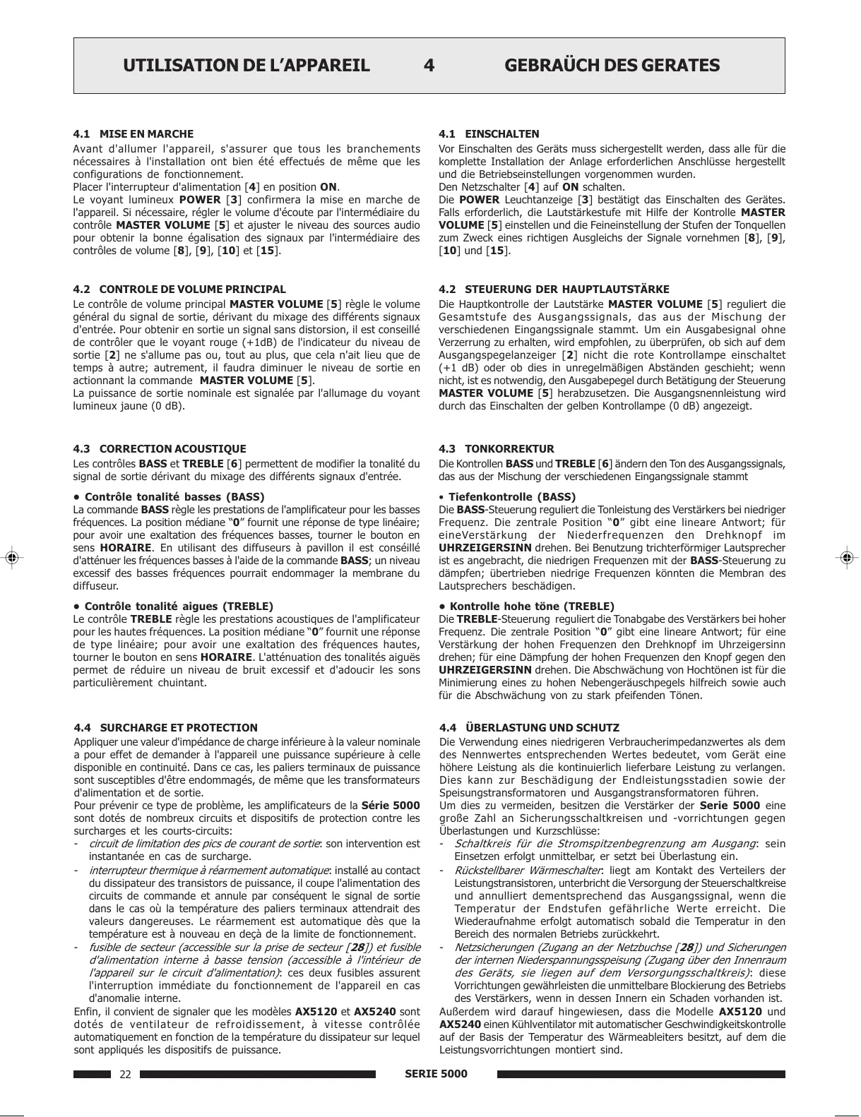 MASTER VOLUME [5] herabzusetzen. Die Ausgangsnennleistung wird
