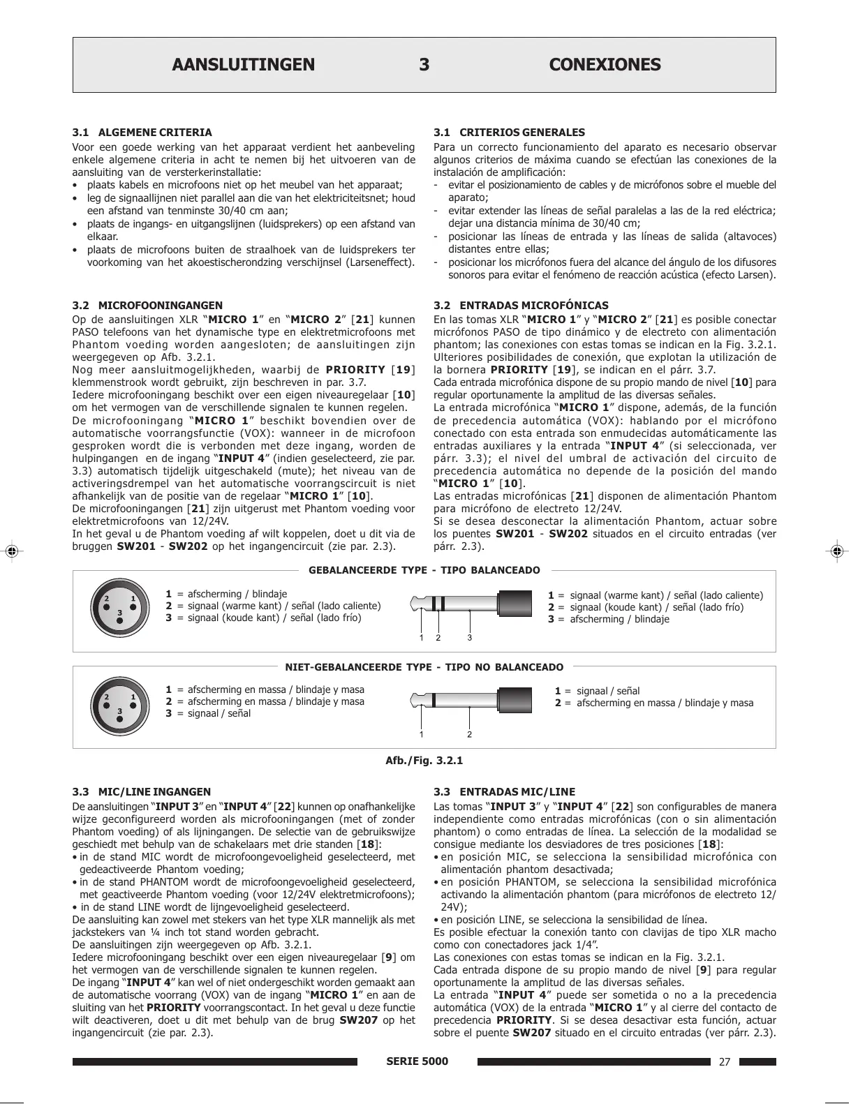 phantom; las conexiones con estas tomas se indican en la Fig. 3.2.1.