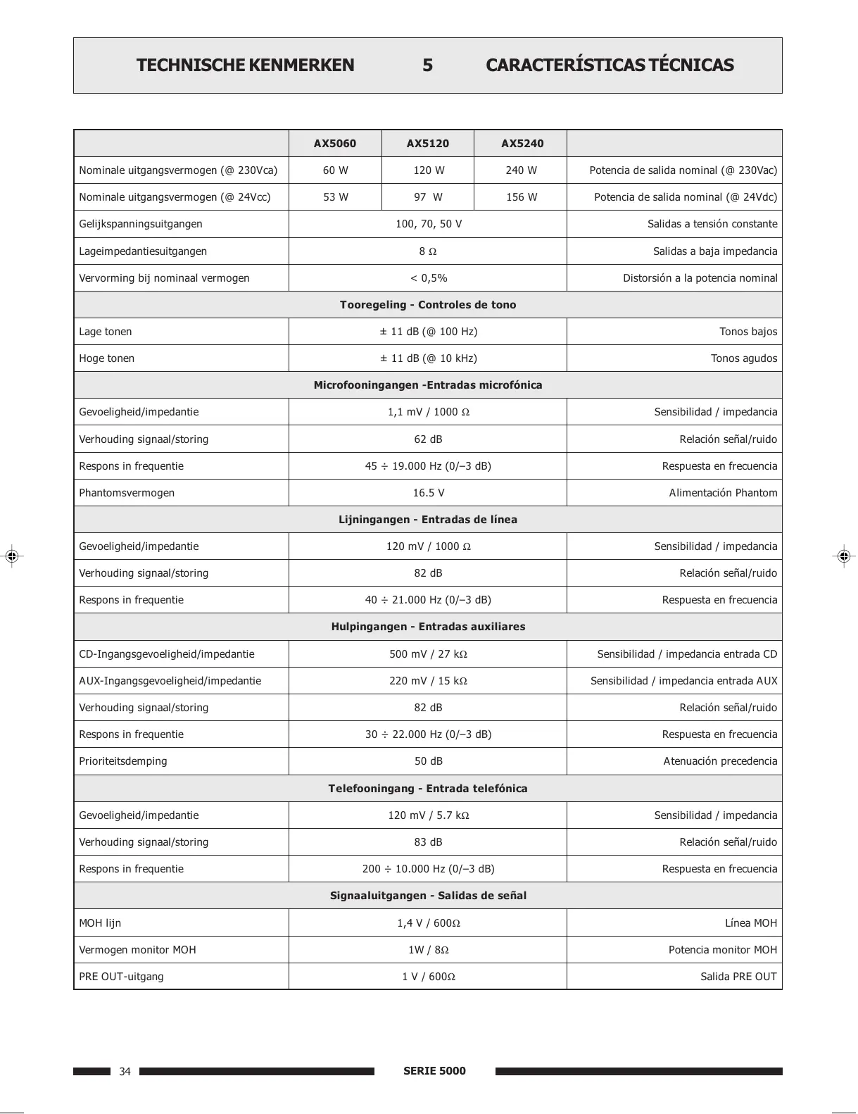 CARACTERÍSTICAS TÉCNICAS5TECHNISCHE KENMERKEN
