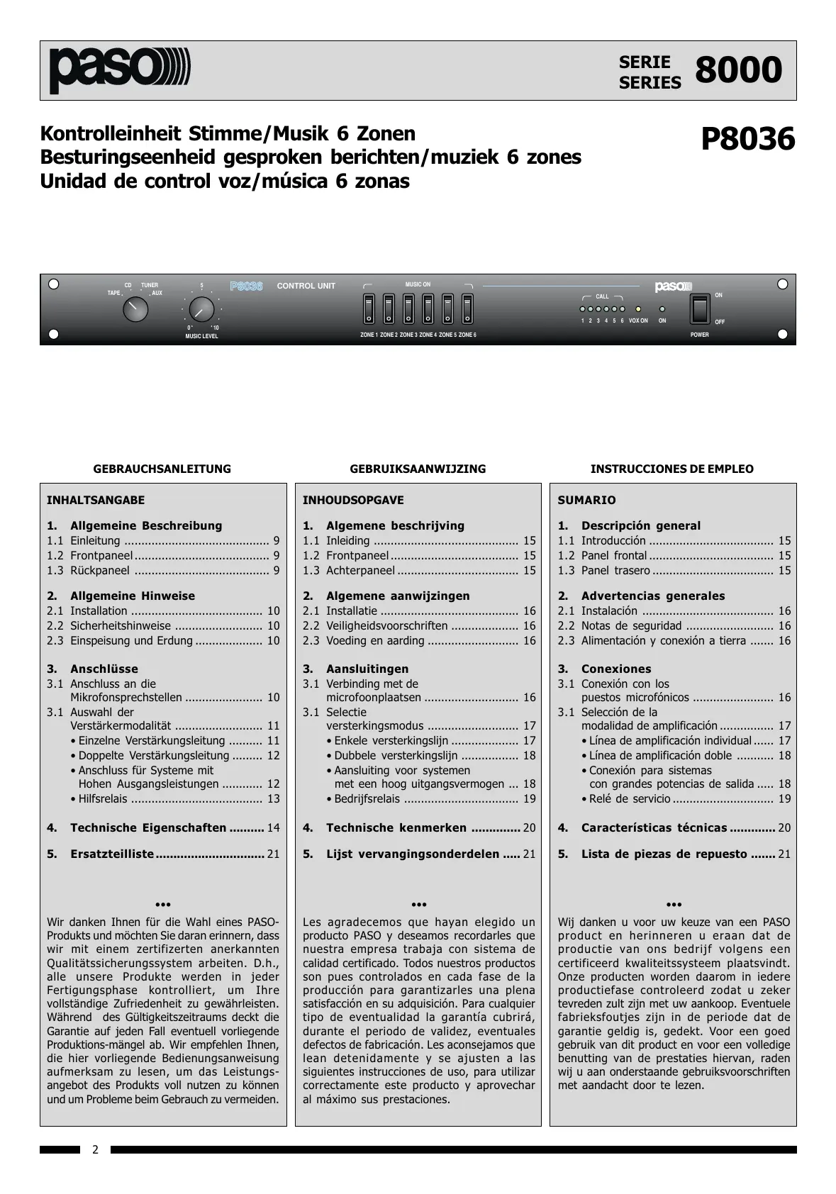 Wir danken Ihnen für die Wahl eines PASO-