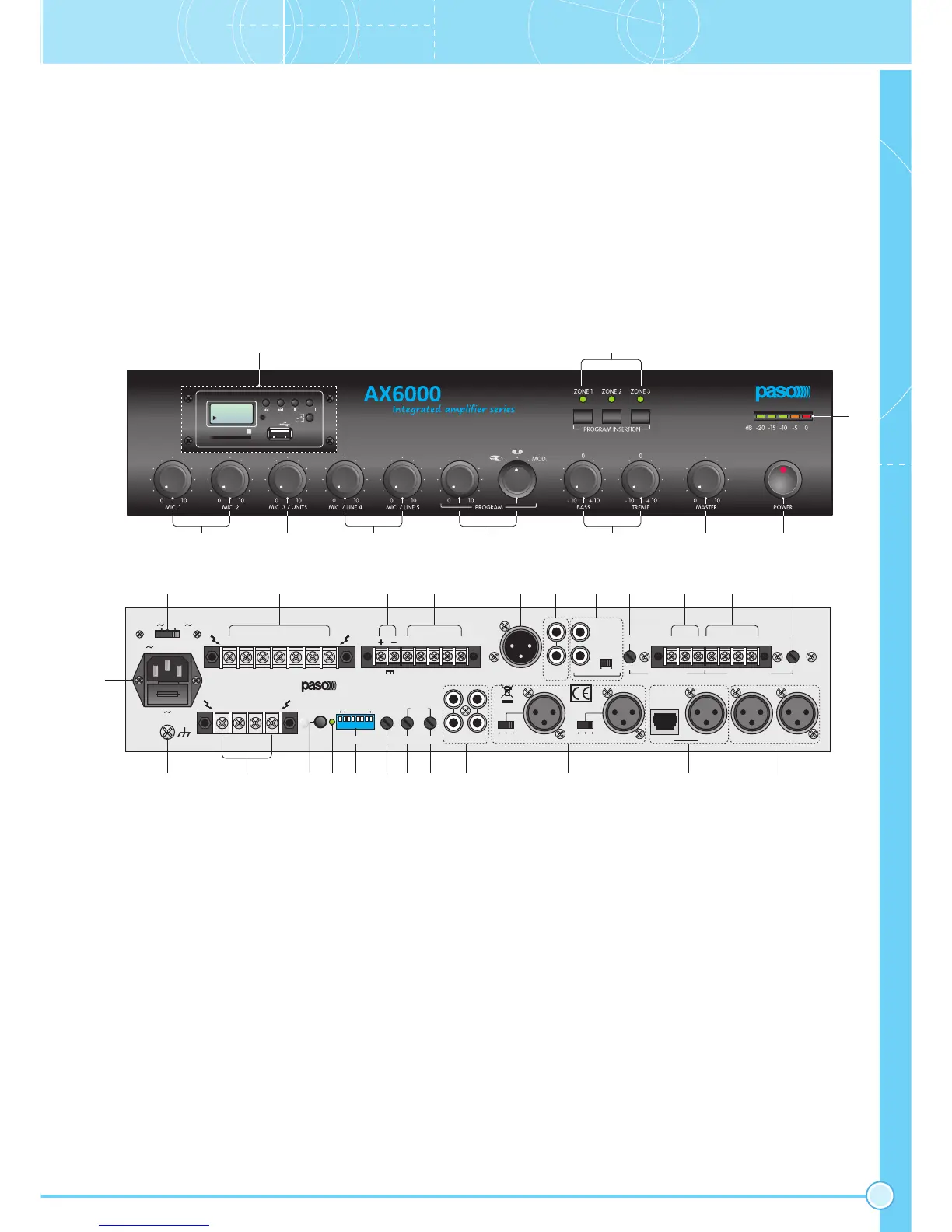 De versterkers AX6120 en AX6240 zijn met een centrale verwerkingseenheid