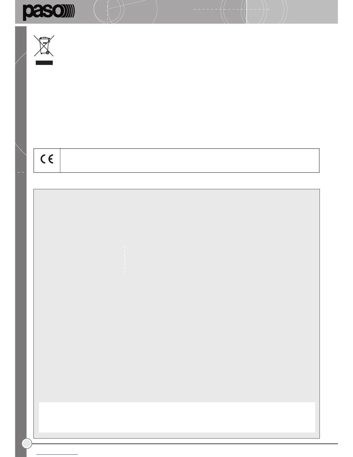 vigueur. Paso réparera gratuitement tout produit défectueux en garantie dès lors que l’anomalie se vérifiera dans le cadre d’une utilisation normale du