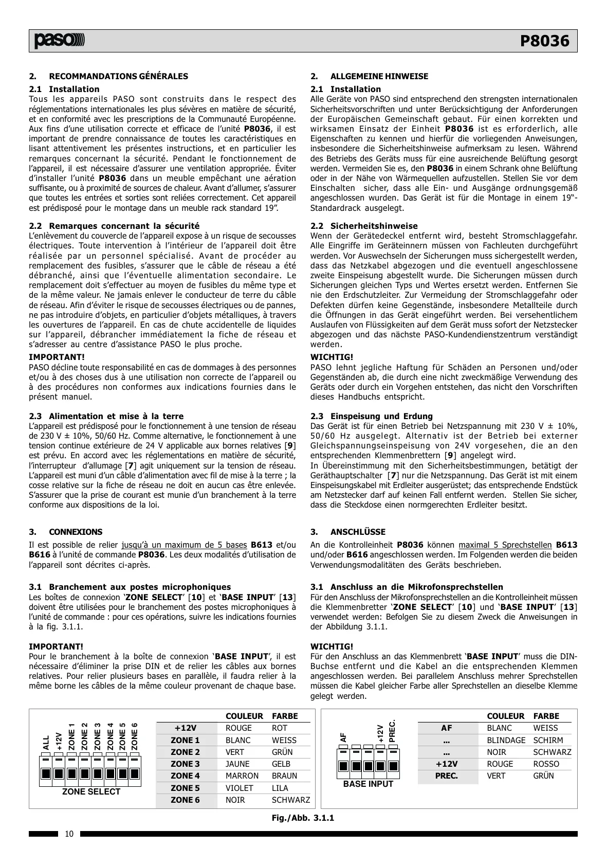 Aux fins dune utilisation correcte et efficace de lunité P8036, il est