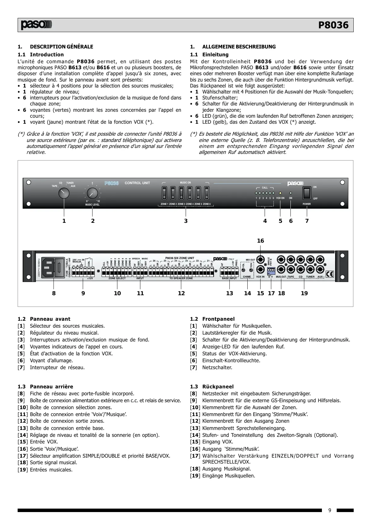 microphoniques PASO B613 et/ou B616 et un ou plusieurs boosters, de