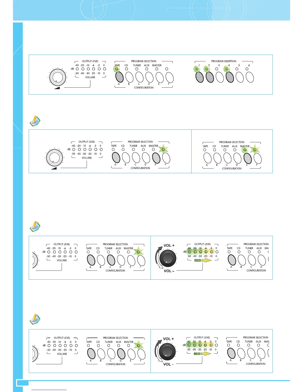 Per attivare la diffusione di musica di sottofondo in una o più zone, è sufficiente premere il relativo pulsante della tastiera PROGRAM INSERTION