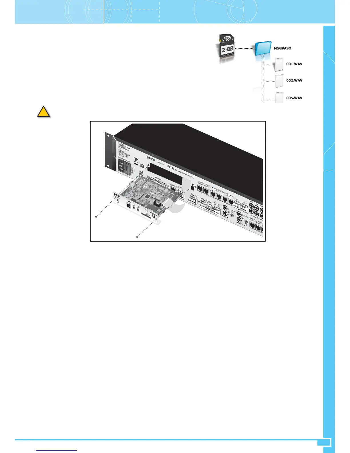 I file *.WAV gestibili dal sistema dovranno essere a 16 bit, a 32.0 KHz o 44.1 KHz, mono o stereo. Nel caso di file stereo verrà riprodotto solo il canale