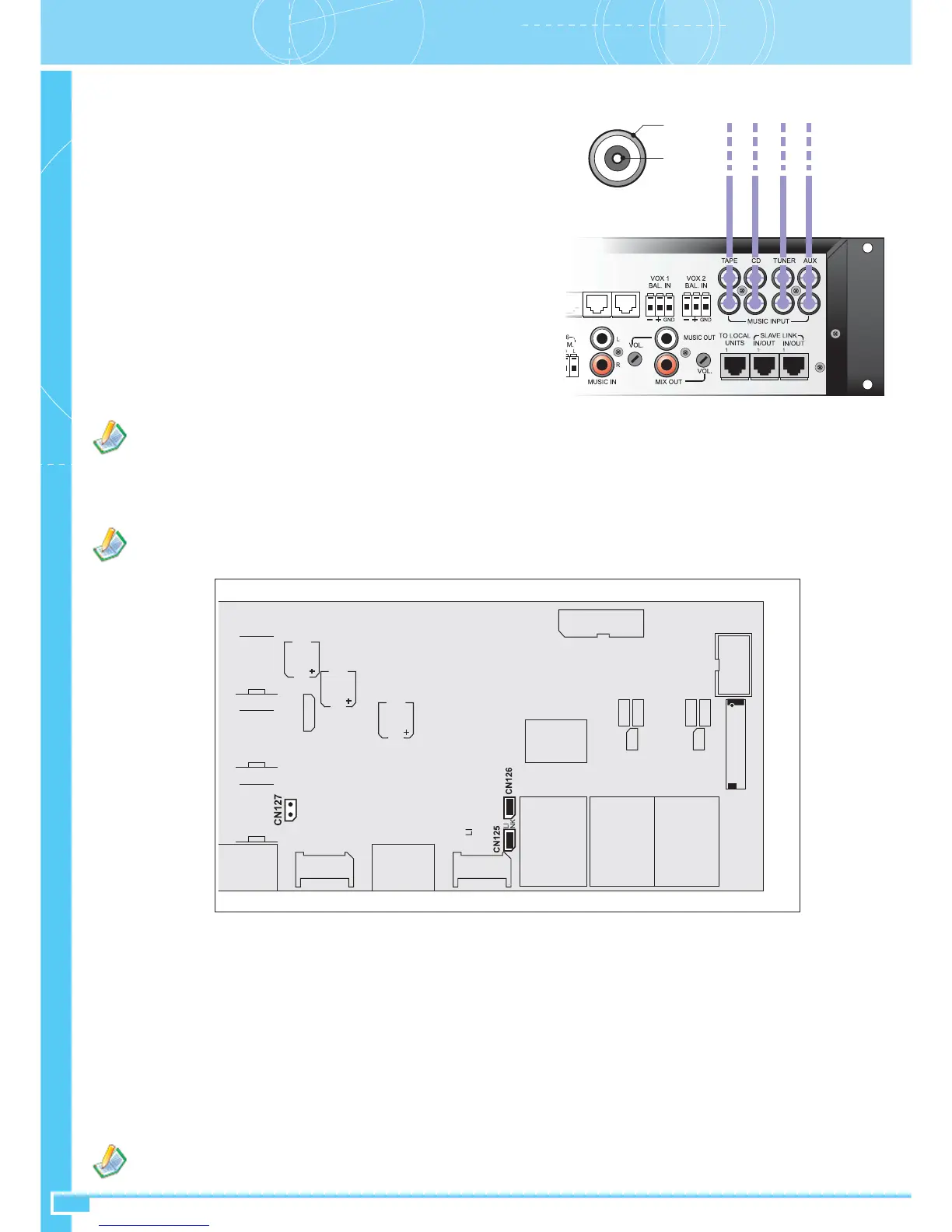 Sull’ingresso MUSIC IN è necessario entrare con un segnale a livello linea massimo di 0 dB e non è possibile regolare il volume verso gli altri