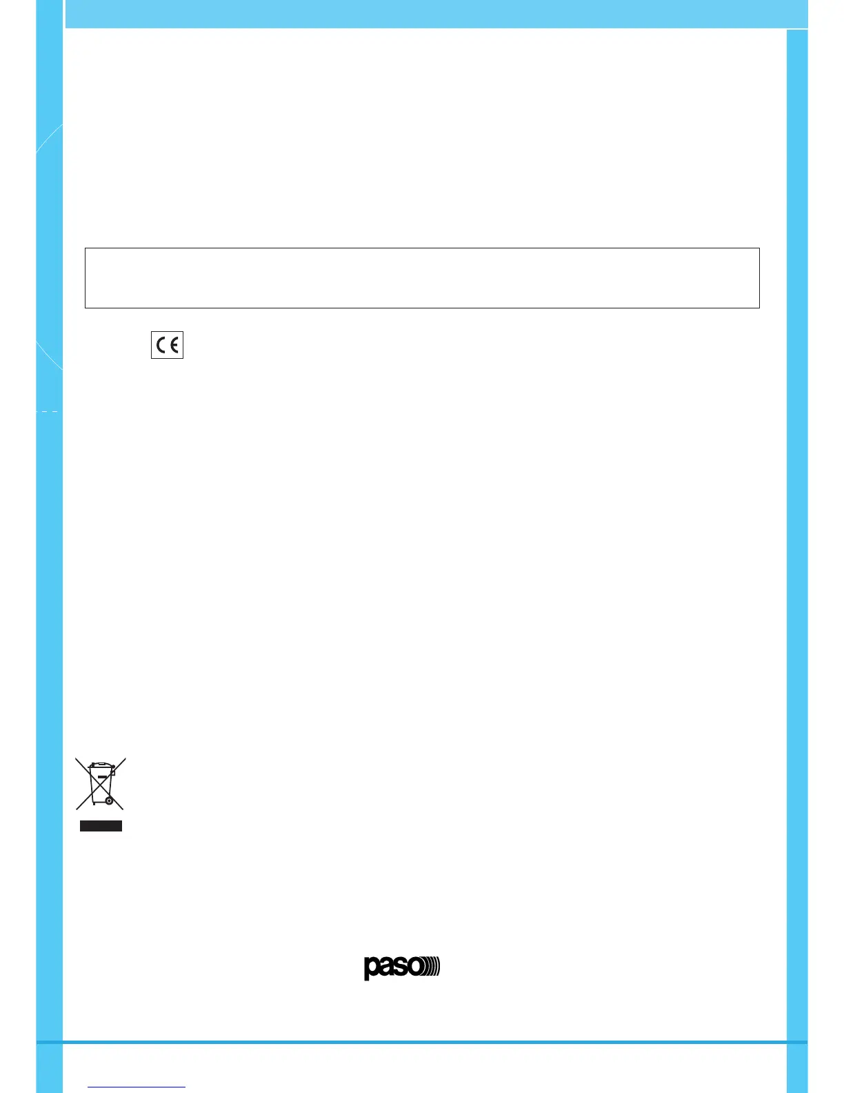 Nota La PASO S.p.A declina ogni responsabilità per danni a cose e/o persone derivanti dall’uso non corretto dell’apparecchio o da procedure non