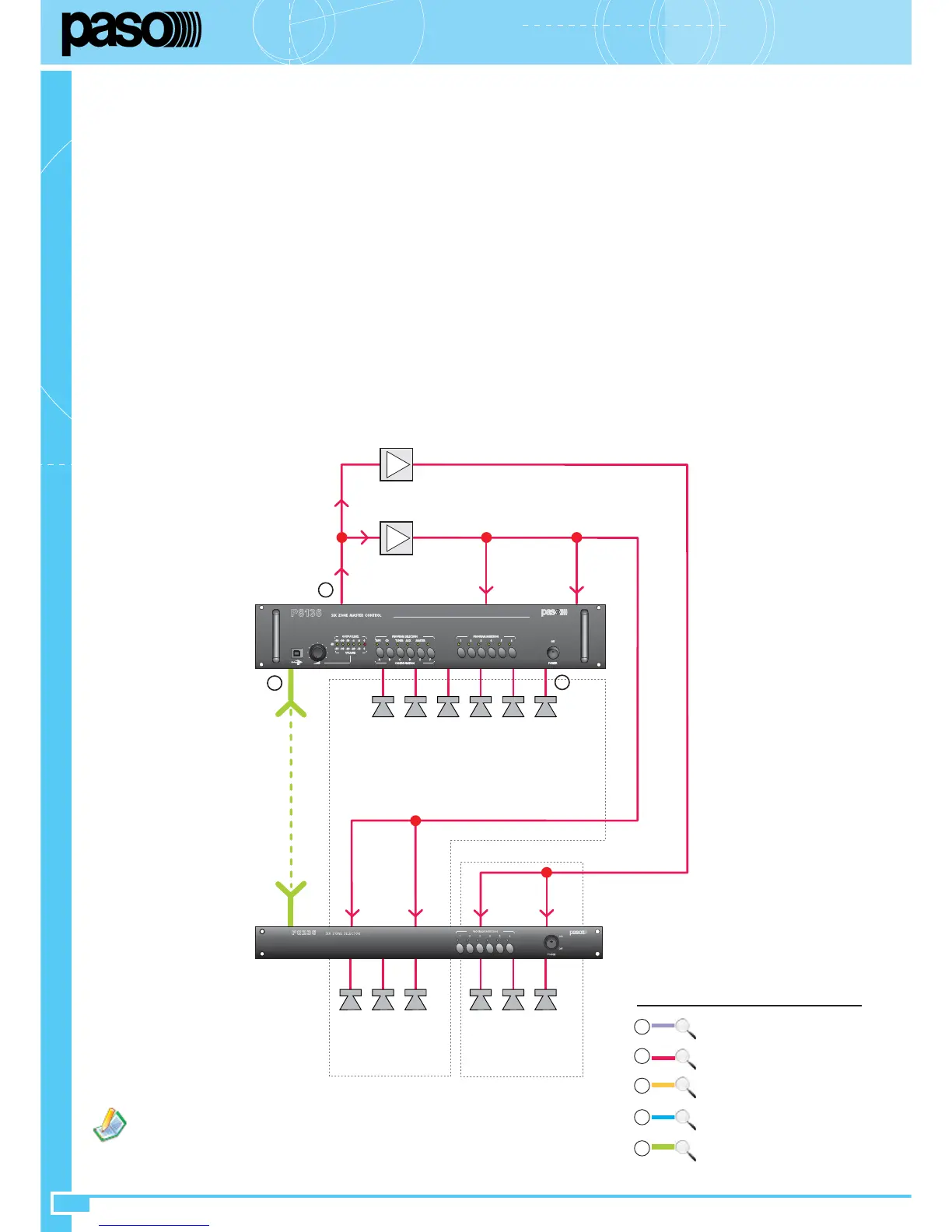 • If an overall output power exceeding that of a 500W amplifier (the largest in the Paso range) is required, it is possible to use more than one