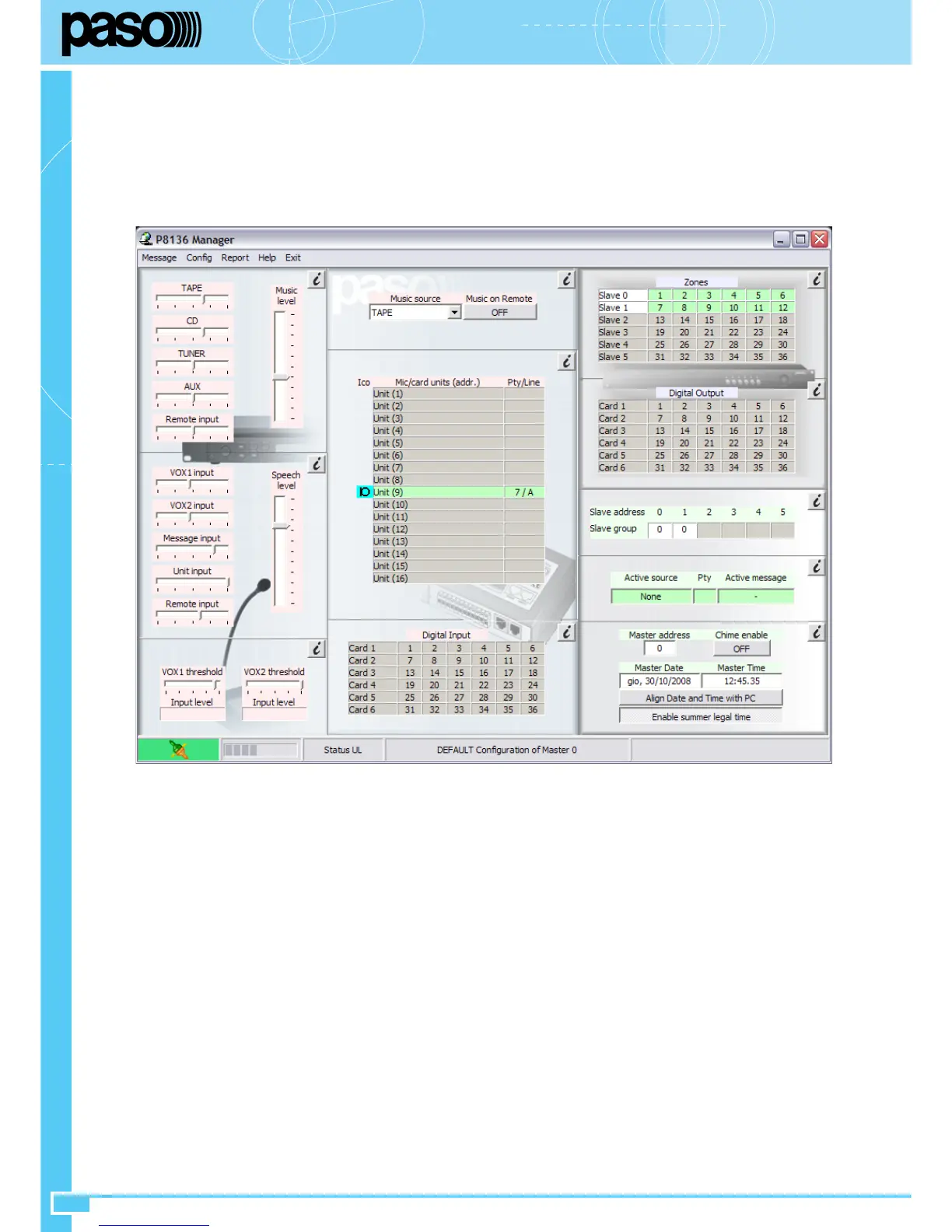 • Creation and downloading of the set-up configuration of microphone stations keys, digital inputs/outputs, timer events and calling up of digital