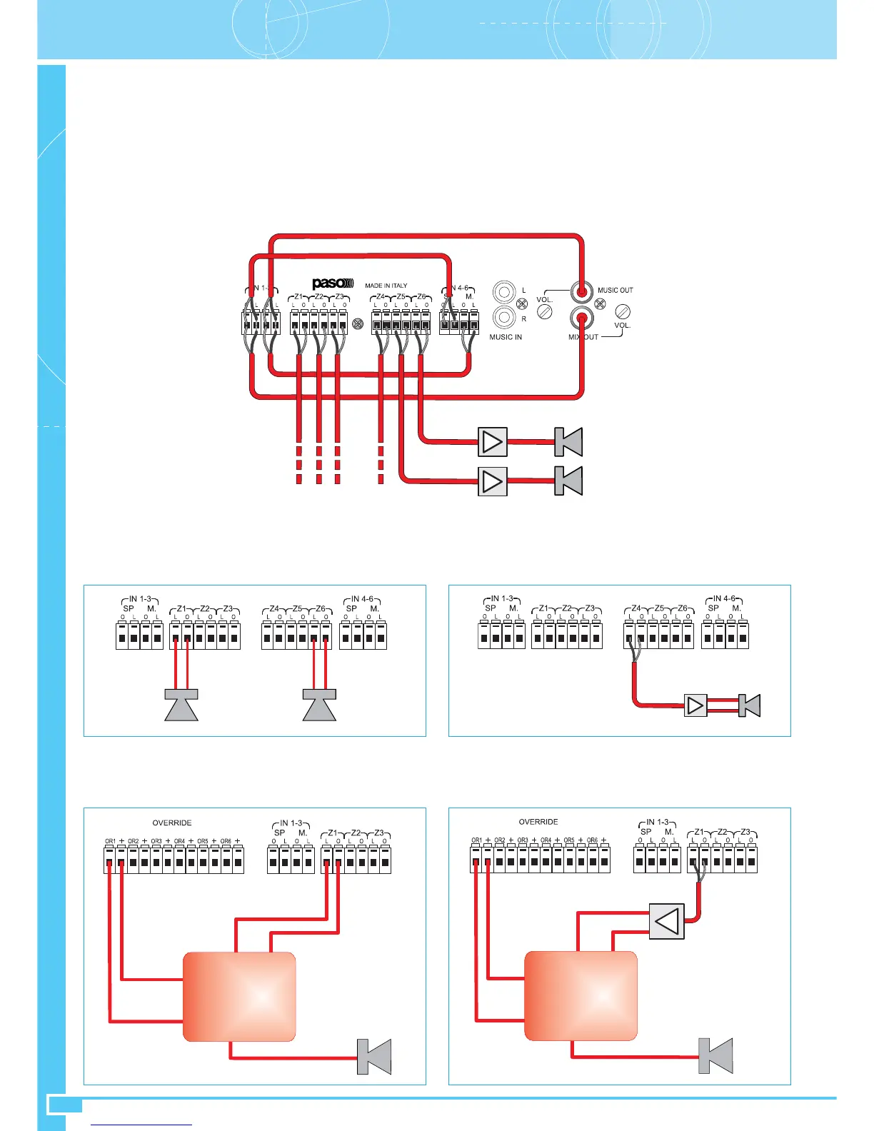 For the case referred to under point 5.3, the speaker unit lines are connected directly to the power outputs of their respective zone amplifiers.