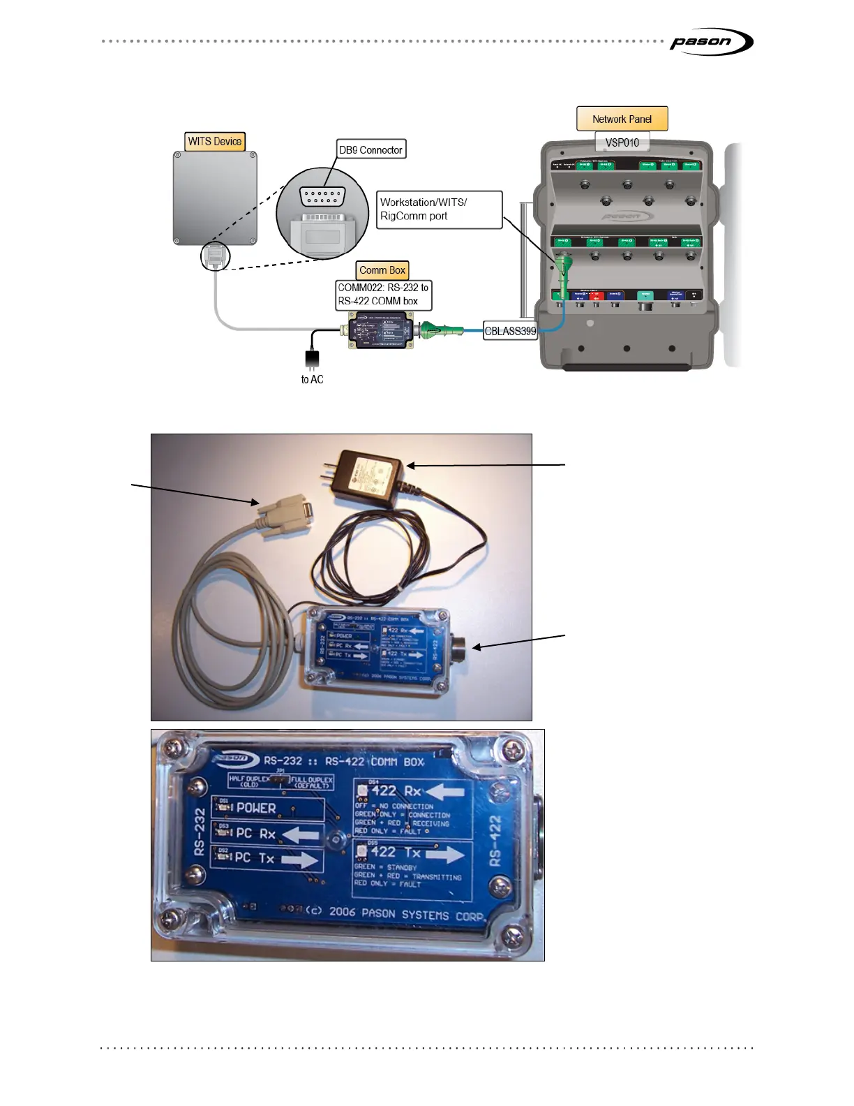 Pason WITS - Figure 3: Connecting a WITS Device to a Network Panel; Figure 4: COMM022 Comm Box and Components