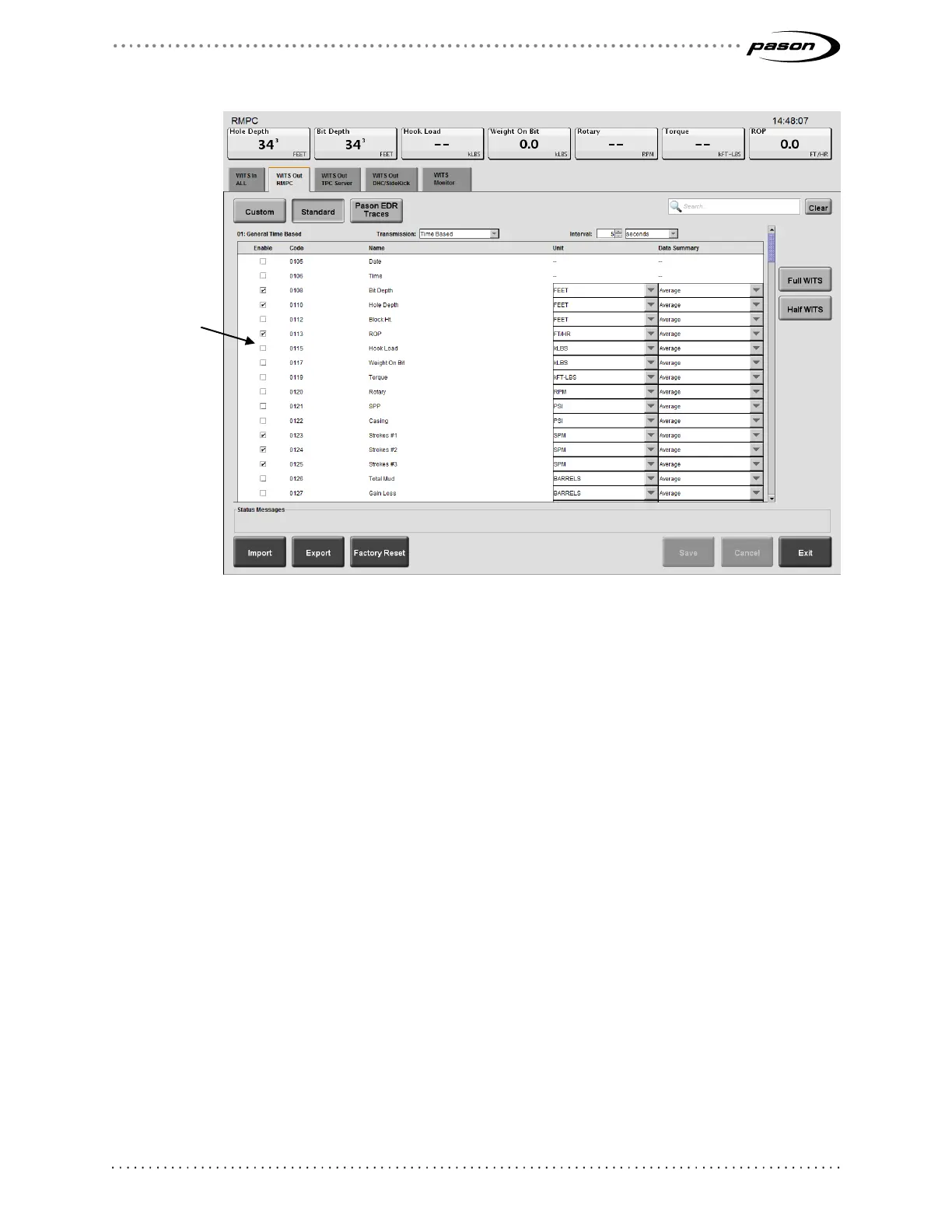 you to send Pason trace data using WITS. Use this feature to send Pason traces that