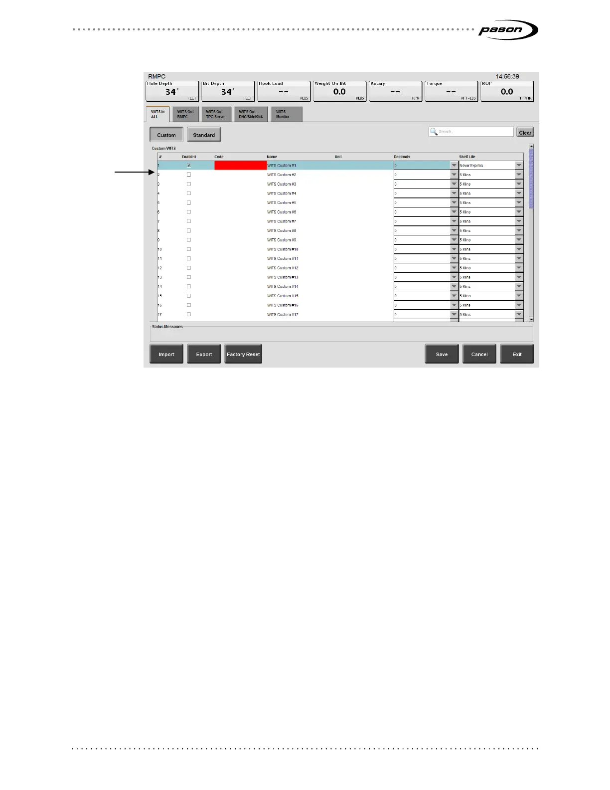 Figure 12: Highlighted custom WITS row