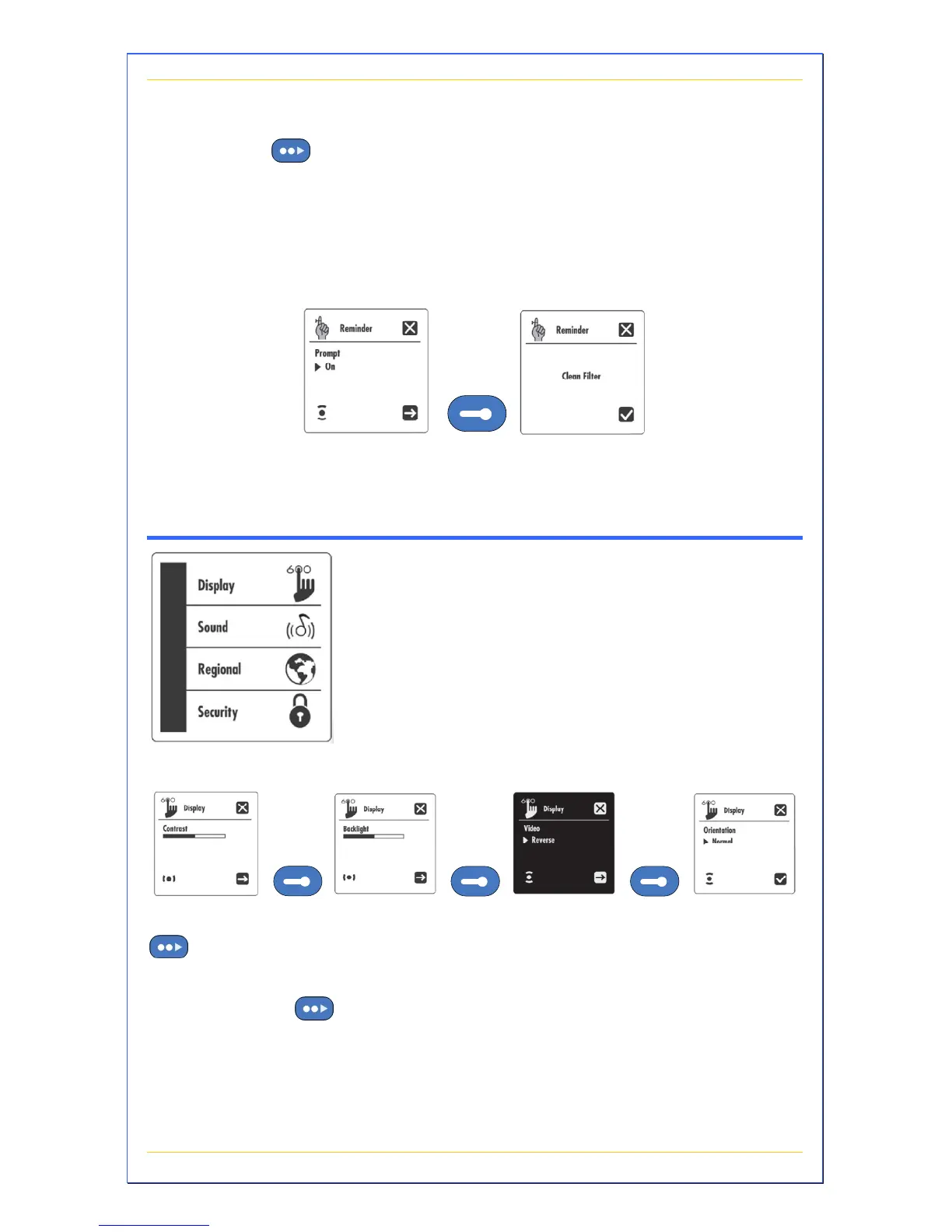 normal maintenance issues. Press +/- to turn on/off the reminders.