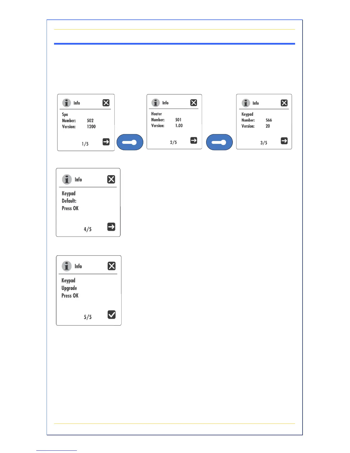 This sub-menu allows you to view spa equipment data such as spa