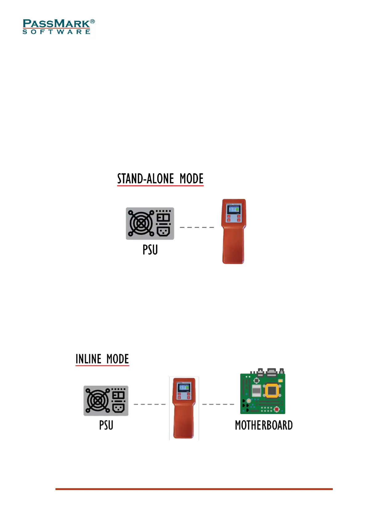 In this configuration, the PSU Tester is only connected to a PSU (i.e. it is not