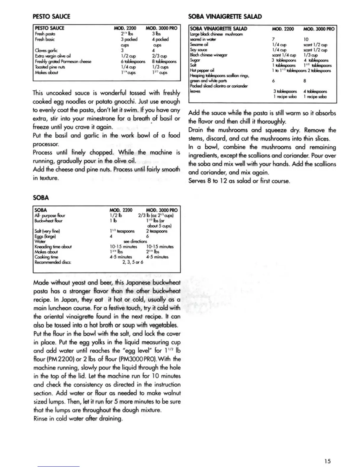 Pastamaster 2200 - Pesto Sauce Recipe; Soba Vinaigrette Salad Recipe; Soba Pasta Recipe