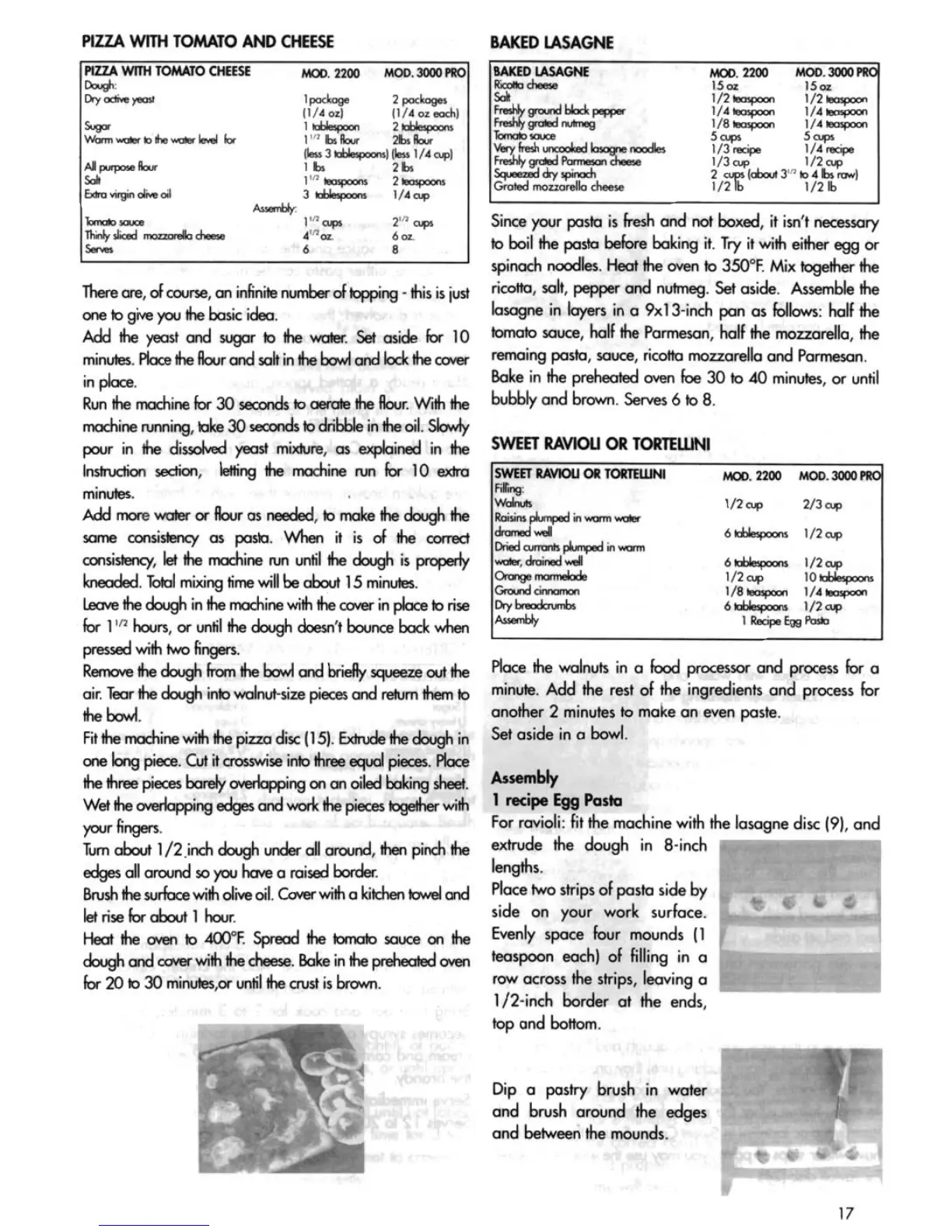 Pastamaster 2200 - Pizza with Tomato and Cheese Recipe; Baked Lasagne Recipe; Sweet Ravioli or Tortellini Recipe; Sweet Ravioli and Tortellini Assembly