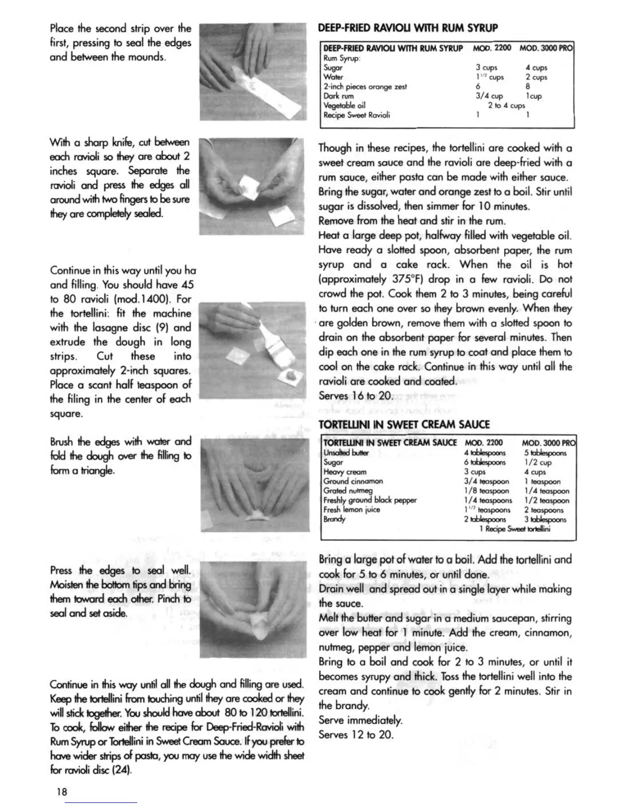 Pastamaster 2200 - Deep-Fried Ravioli with Rum Syrup Recipe; Tortellini in Sweet Cream Sauce Recipe