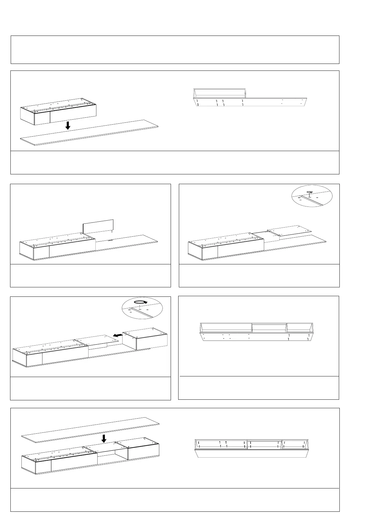 Secure the finishing top from the bodies underneath using the supplied short bolts (B; L=20mm).